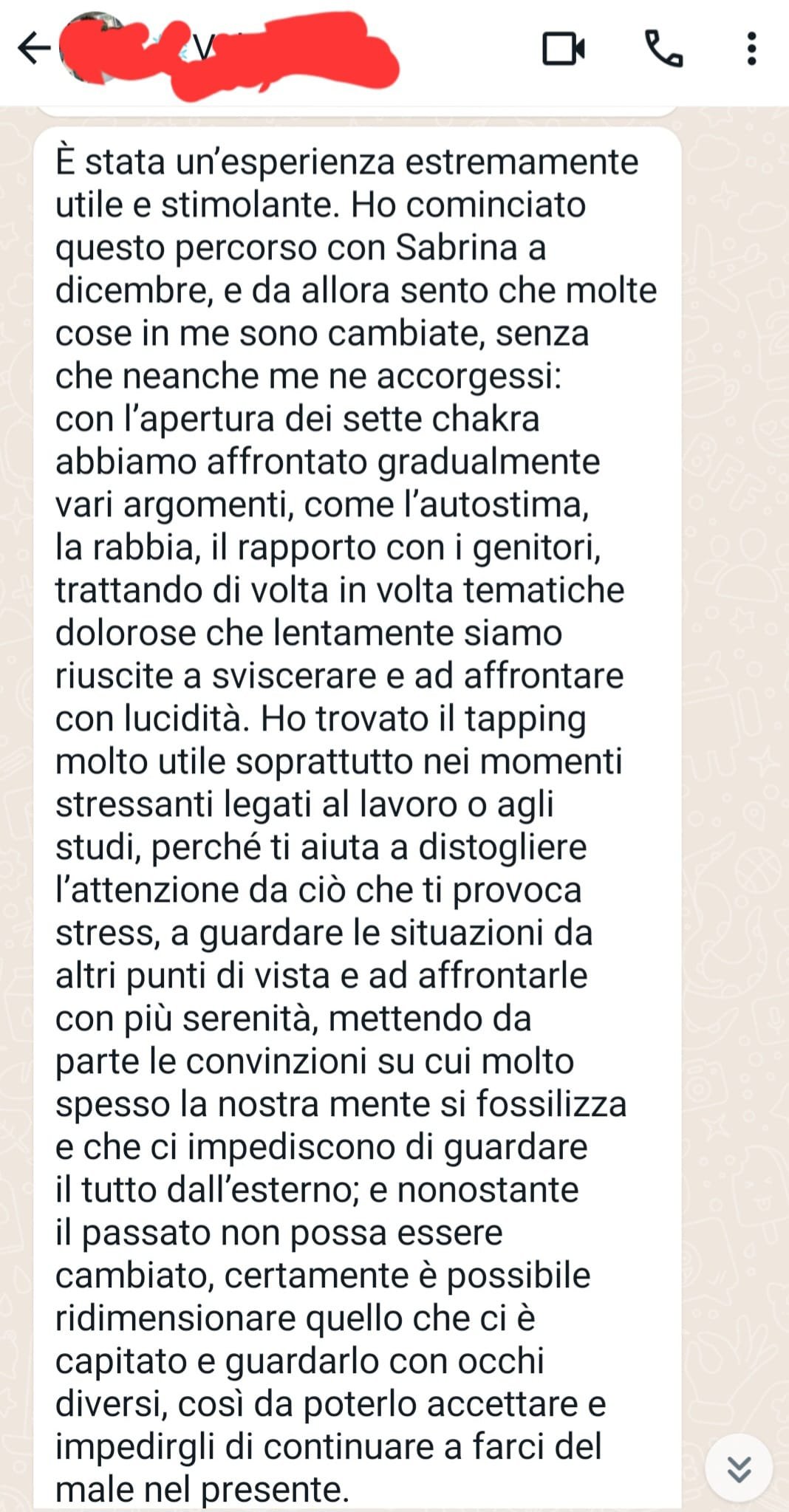 Come operatrice di EFT (Emotional Freedom Techniques) e tapping, il mio lavoro consiste nel fornire un approccio a 360° che integra l’ esposizione verbale con la stimolazione fisica di specifici punti energetici del corpo. L’EFT è una tecnica di auto-aiuto basata sul tapping, che coinvolge il tocco leggero su punti specifici del corpo mentre si esplorano e si affrontano pensieri, emozioni o disagi.